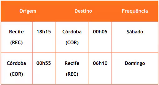 A GOL Linhas Aéreas, maior operadora de rotas que ligam o Brasil à Argentina, anuncia a abertura das vendas de bilhetes para sua mais recente rota internacional regular nesse corredor: Córdoba (COR)-Recife (REC). A ligação sem escalas da capital pernambucana à segunda cidade mais populosa da Argentina terá início no dia 12 de abril de 2025, com 1 frequência semanal de ida e volta (veja dias e horários na tabela abaixo).
