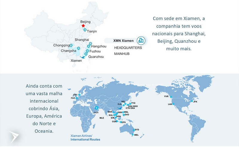 Com sede na cidade de Xiamen, a companhia opera uma extensa rede de voos domésticos, conectando destinos importantes como Shanghai, Beijing e Quanzhou. Além disso, a Xiamen Airlines oferece uma ampla cobertura internacional, com rotas que abrangem a Ásia, Europa, América do Norte e Oceania.