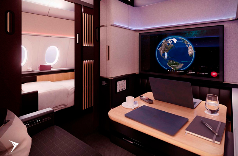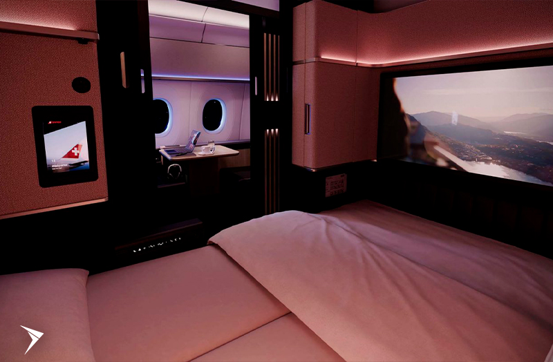 Entre em uma nova era de elegância, espaço e liberdade absoluta com a SWISS First Grand Suite, onde o céu se torna o seu próprio santuário particular.