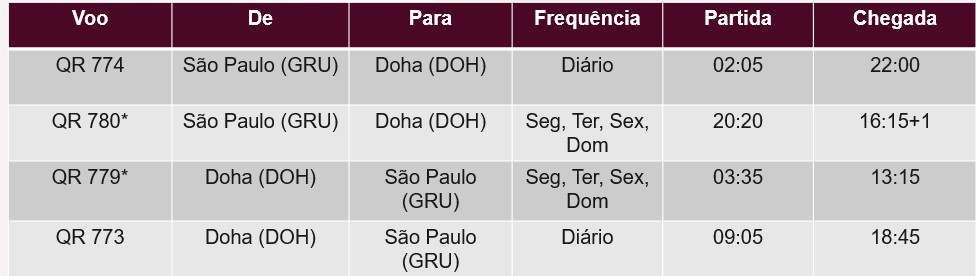 QR : Voos diários saindo de São Paulo para mais de 120 destinos via Doha